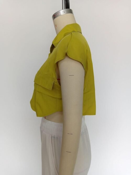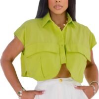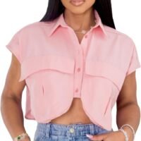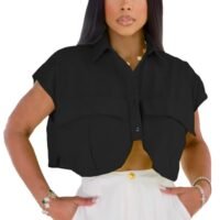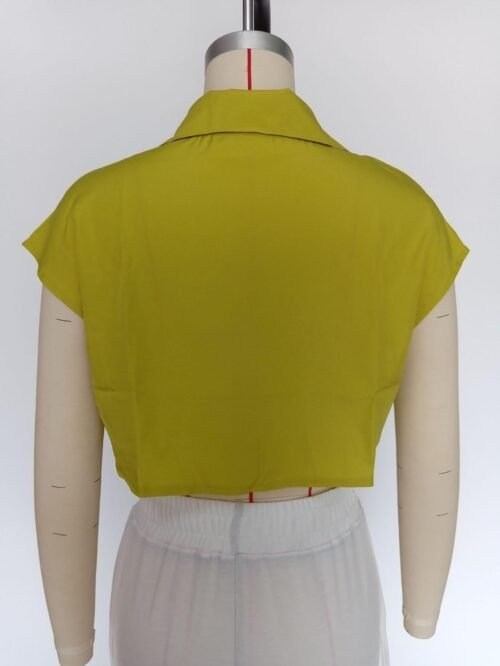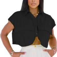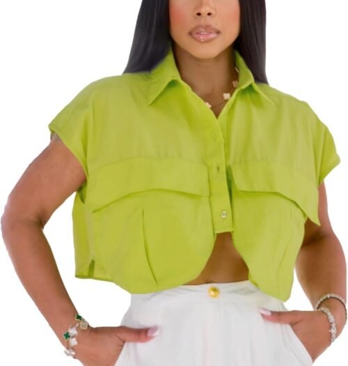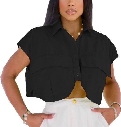 Fashion Design: This women’s crop top features a cap sleeve, irregular hem and lapel collar, the design giving it a sophisticated and stylish look that is sure to turn heads.