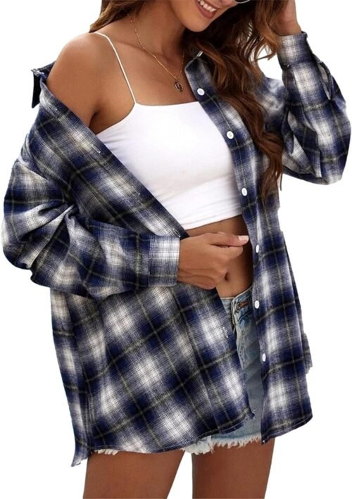 Be the first to review “Plaid Flannel Button Down Shirts for Women Oversized Dressy Casual Long Sleeve Tops Blouse”