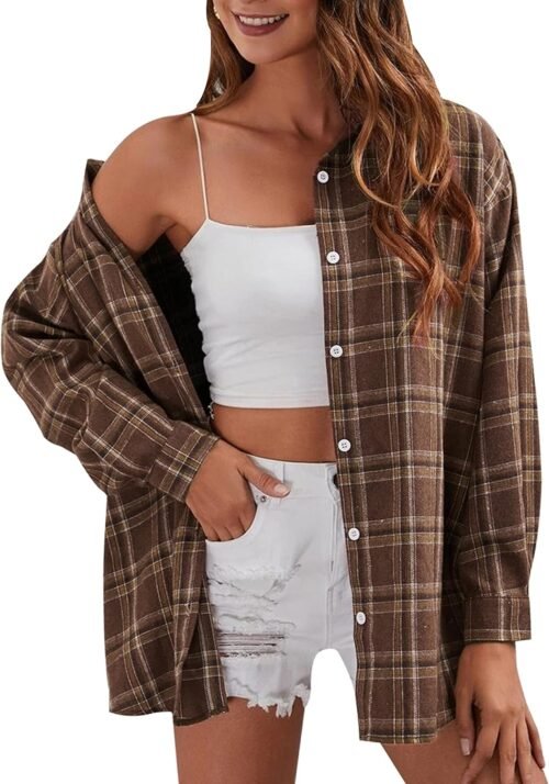Womens flannel shirts made of soft and breathable cotton fabric, Very comfortable to wear alone or as a cover-up or coat, versatile shirt for all seasons, a must-have for women