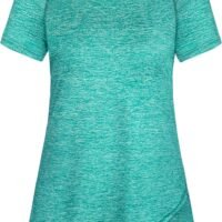 Woman Raglan Sleeve Round Neck Irregular Hem Yoga Workout Shirt Sizes M-3XL