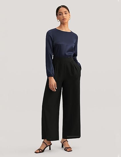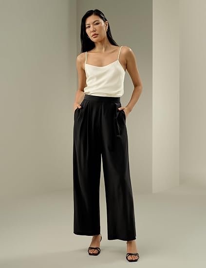 EFFORTLESS WIDE-LEG SILHOUETTE: These wide-leg cropped silk pants feature a relaxed fit that flows with ease, offering ultimate comfort without sacrificing style. Designed for modern ladies who value both elegance and wearability.