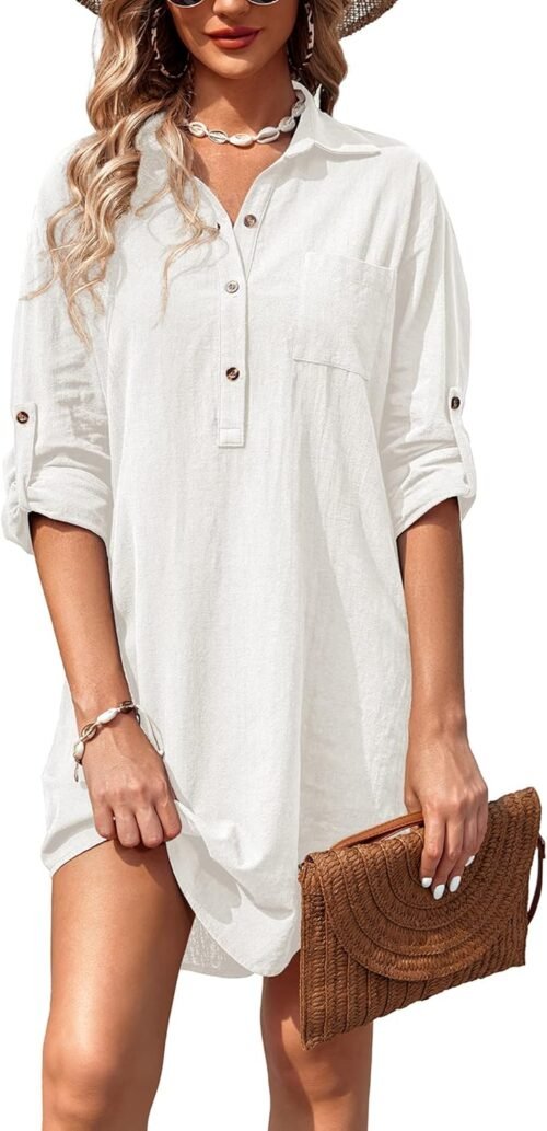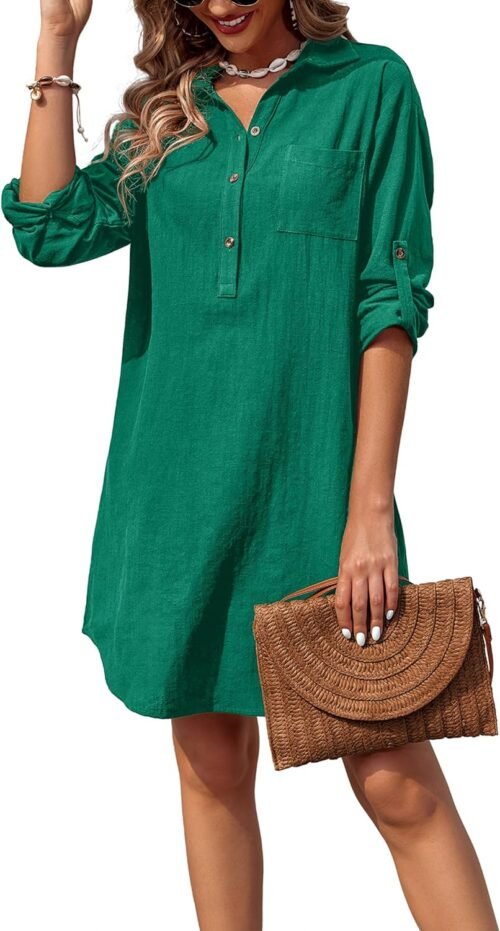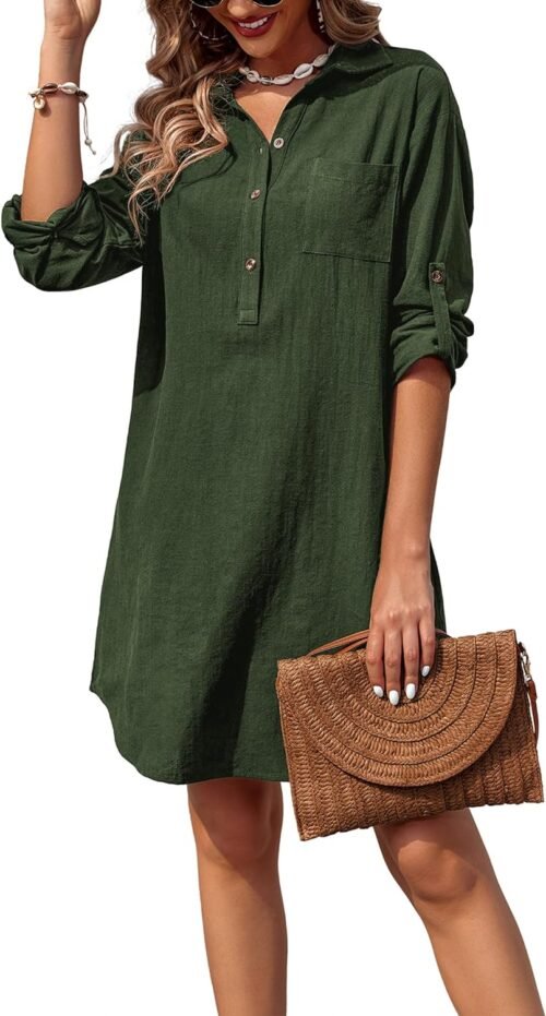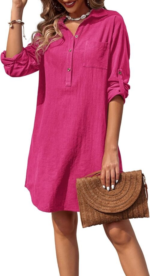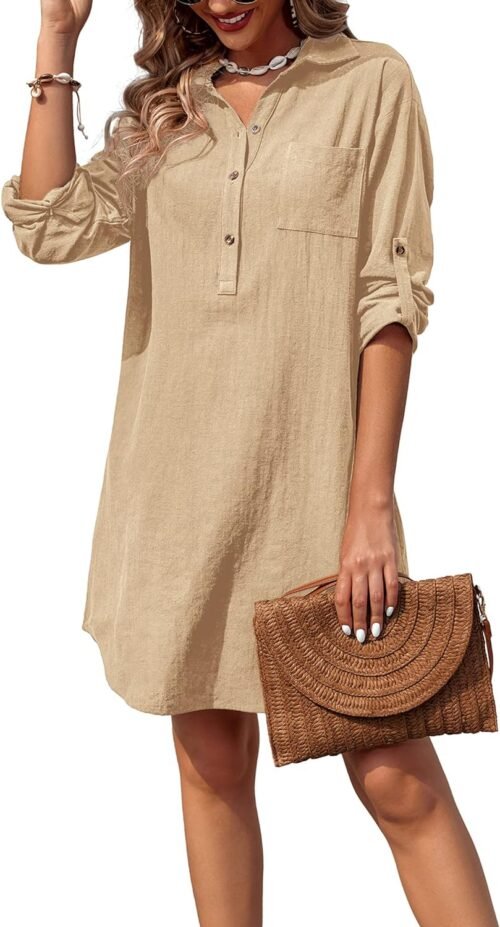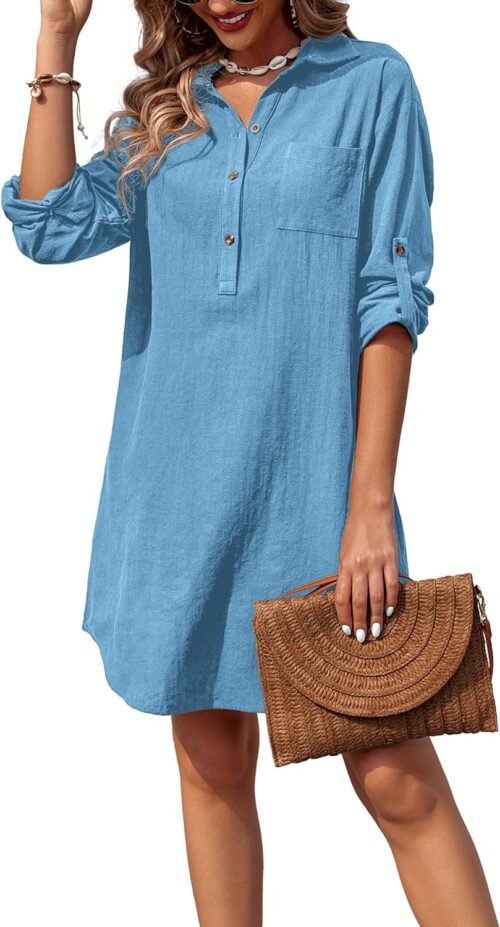 Be the first to review “Women Summer Dress Cotton Linen Shirt Dress Button Down Tunic Dress Beach Cover Up Dress”Cancel Reply