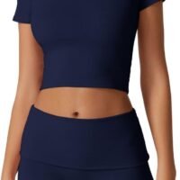 Be the first to review “Women’s 2 Piece Outfits Lounge Sets Slim Fitted Short Sleeve Crop Tops Fold Over Shorts Casual Comfy Trasuits”
