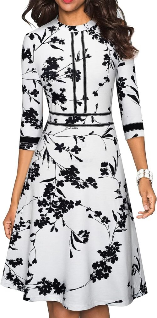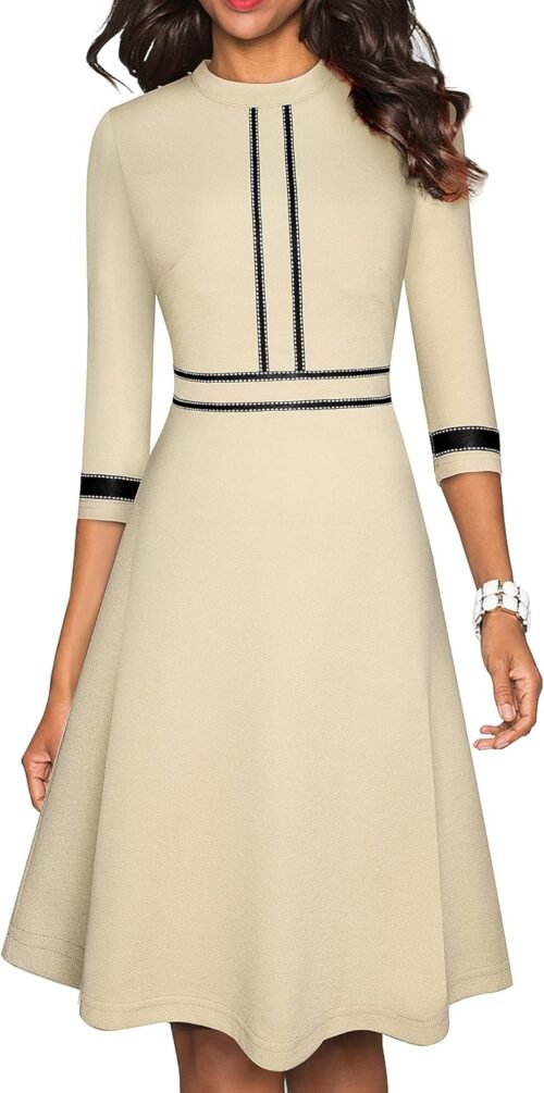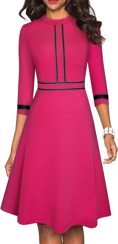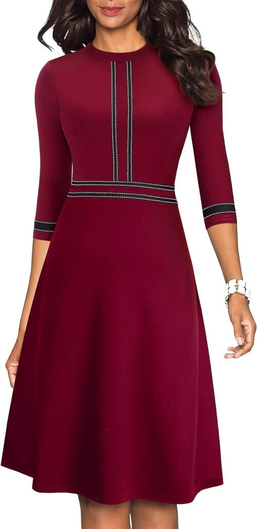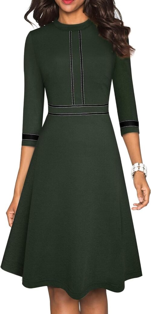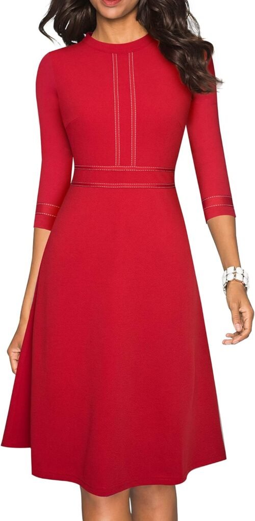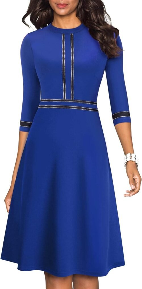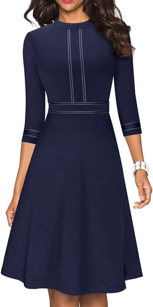 Women’s Chic Crew Neck 3/4 Sleeve Party Homecoming Aline Dress A135