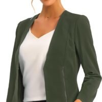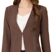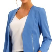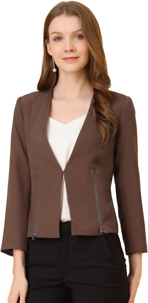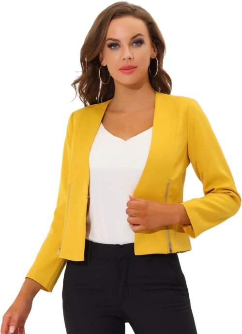 Women’s Crop Collarless Blazers Suit Zip Decor Work Office Jackets Blazer