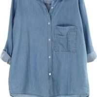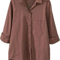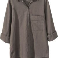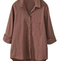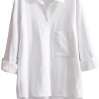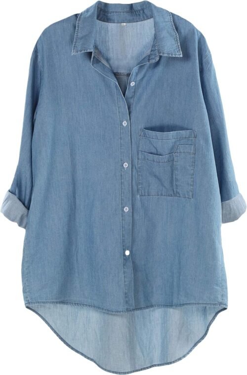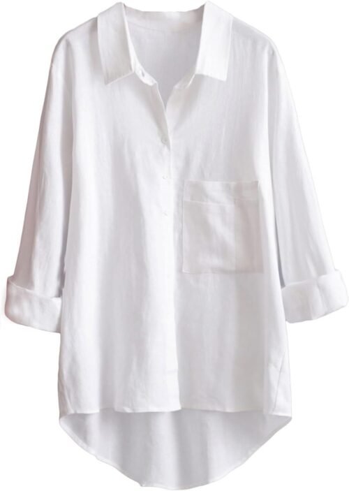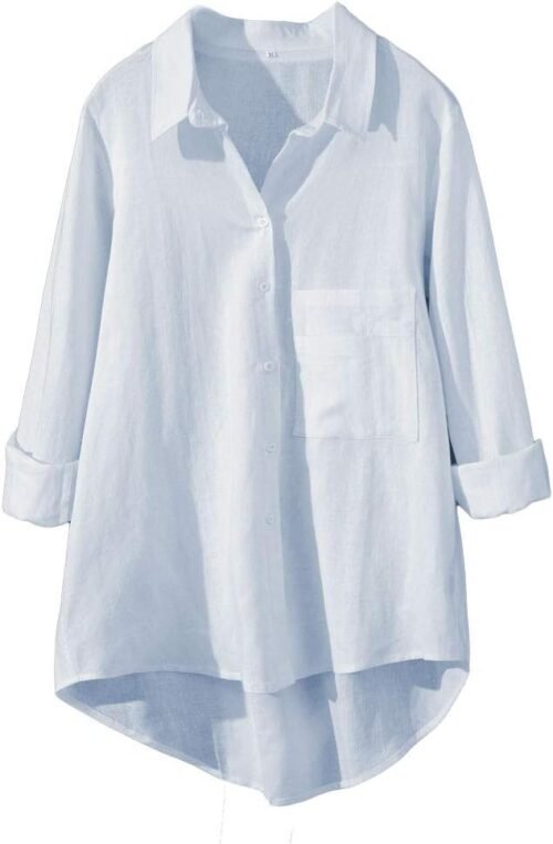 Women’s Long Sleeve Shirts Button Down Blouse Cotton Tunic High Low Tops