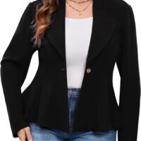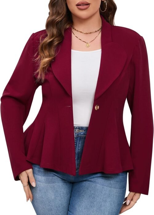 Women’s Plus Size Blazer, Long Sleeve Flattering Business Casual Suit Jacket for Women Fashion Dressy