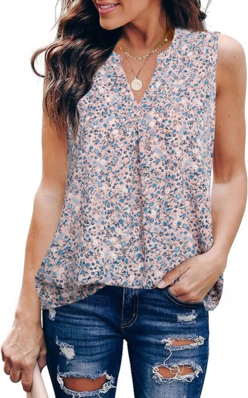 Women’s Summer Tank Blouse Casual V Neck Sleeveless Tunic Top Shirt