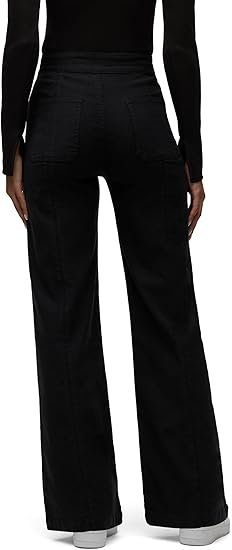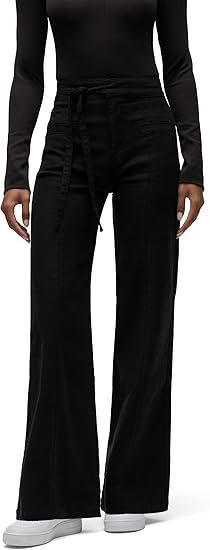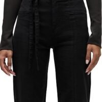 - Features an elevated waistline, front and back pintuck details, and a side tie belt with a 32″ inseam