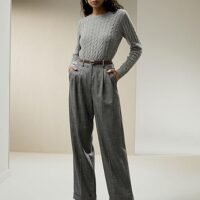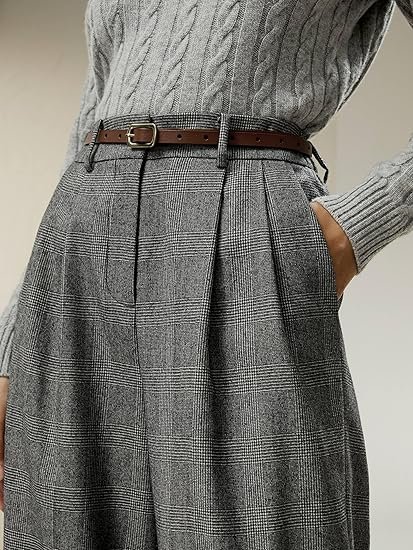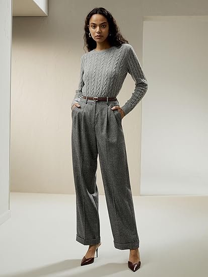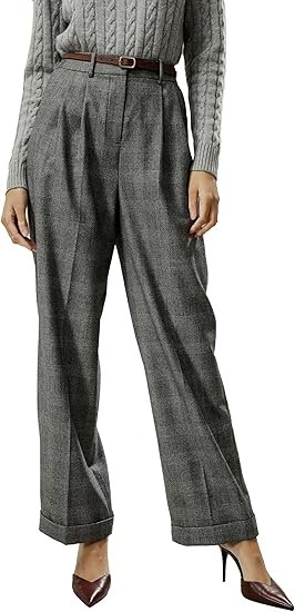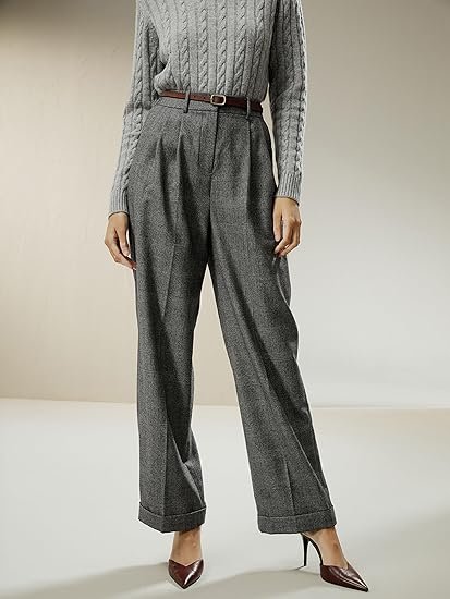 Wool-Flannel Suit Trousers for Women Soft Silk Lined Business Blazer Suit Pants Office Work Formal Occasions